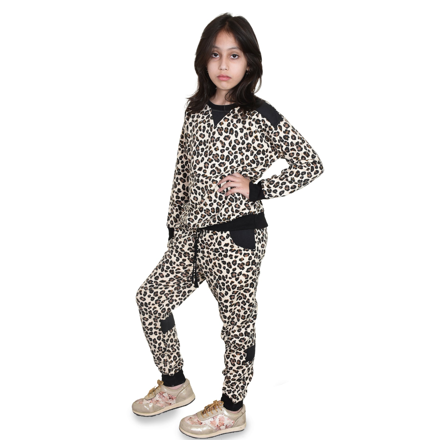 Girls leopards print tracksuit high quality Imported Kid's 2 Pieces Sweatshirt and Jogger Set.