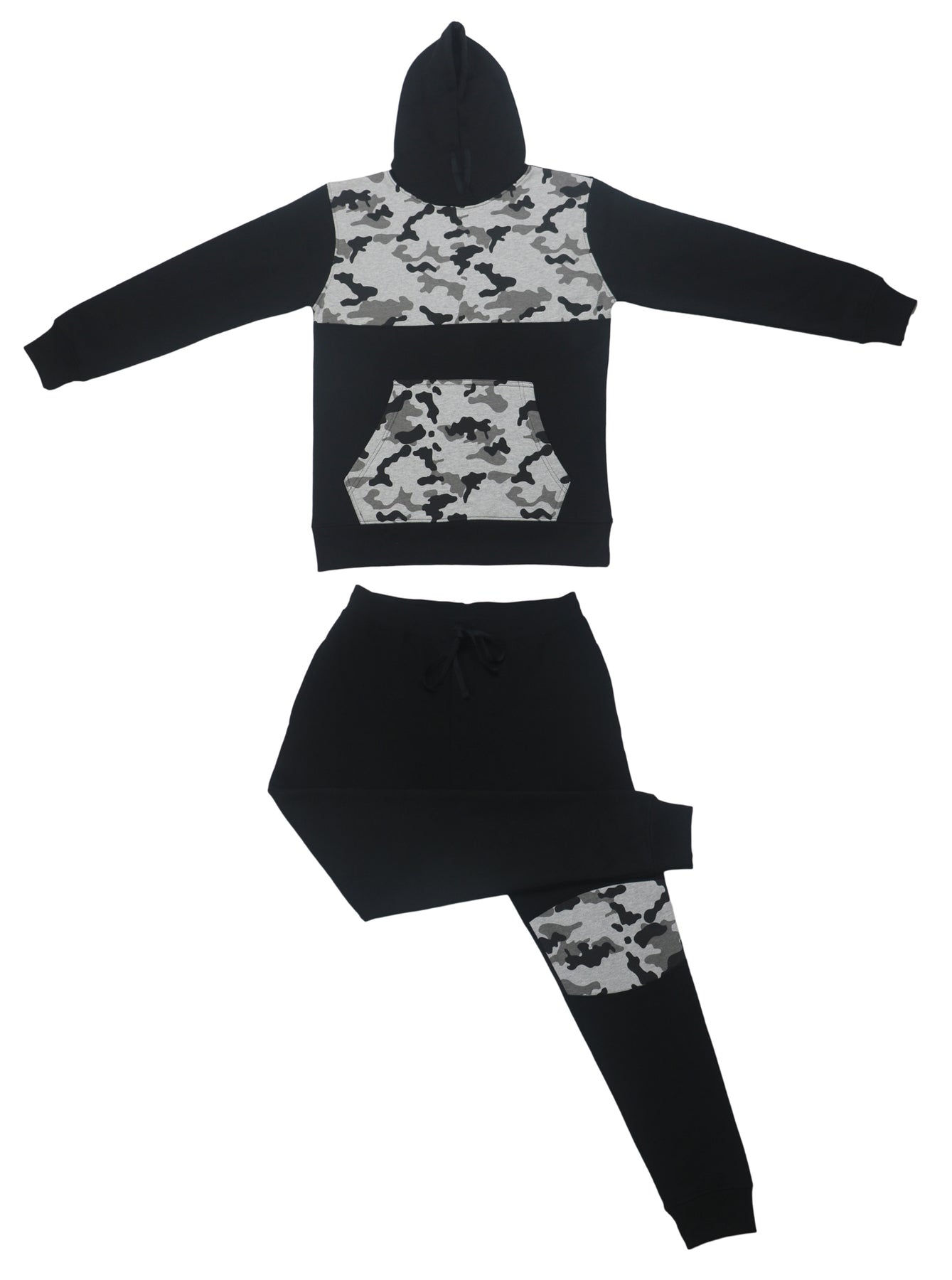 Bahob® Boys Activewear 2 Piece Fleece Pull Over Hoodie & Joggers Camouflage Contrast. - Bahob
