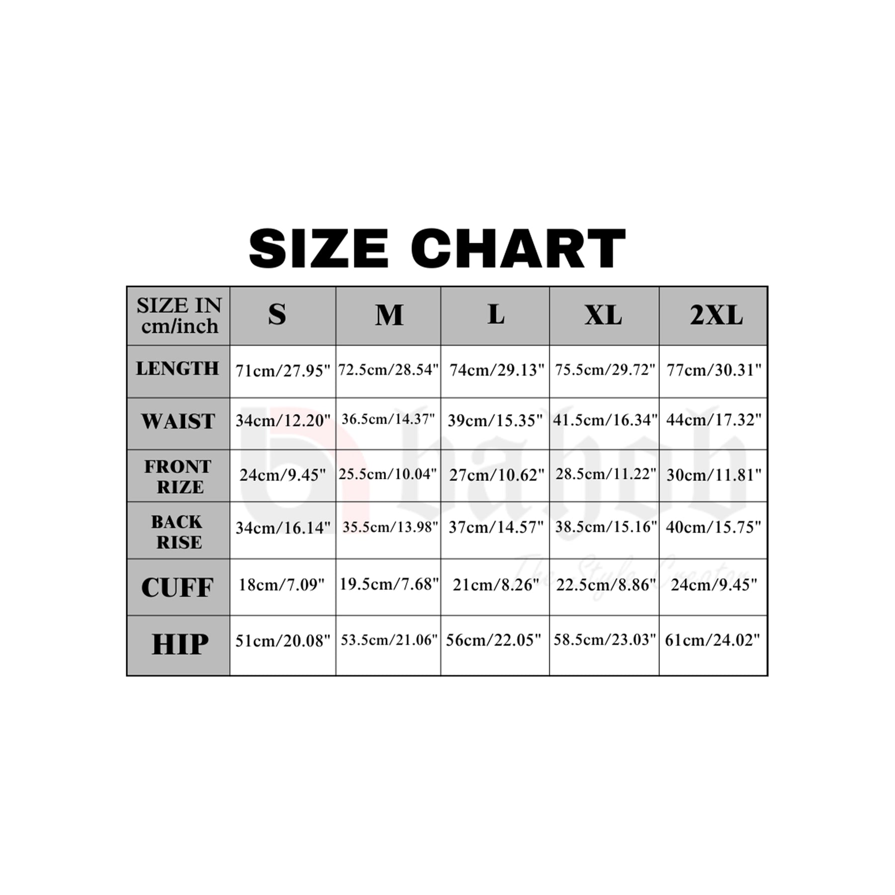 Size chart